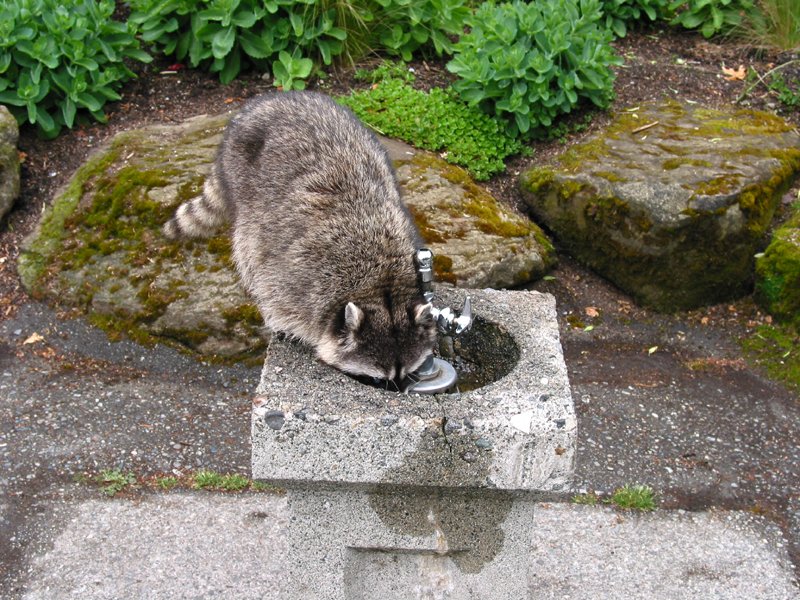 Thirsty racoon in Stanley Park